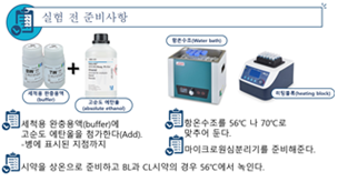 ◦ 실온에서 사용할 시약 준비, 세포 용해 완충액(용해 버퍼, 이 키트에서 BL및 솔루션) 시약이 녹지 않는 경우 56℃그것에 용해.